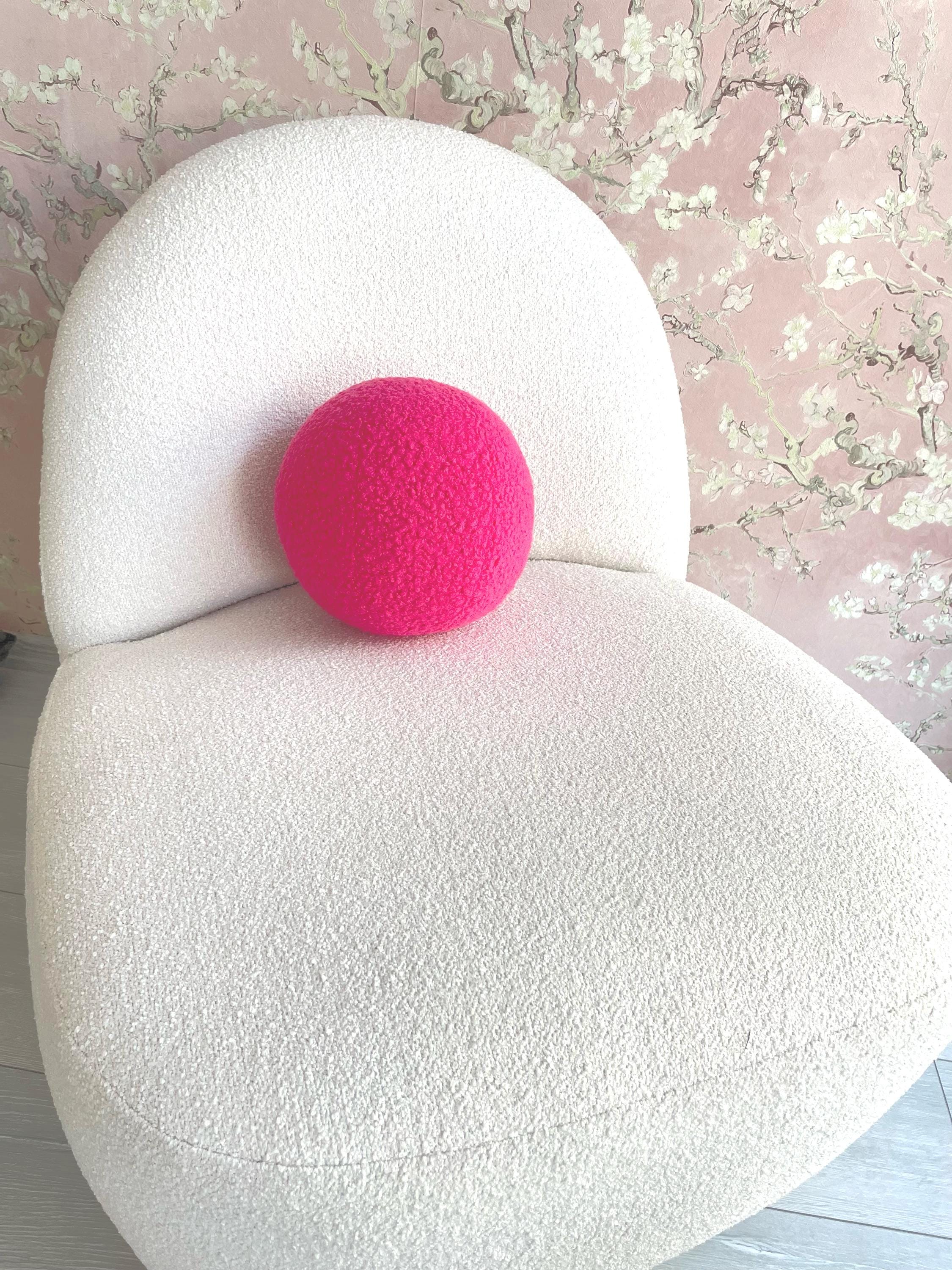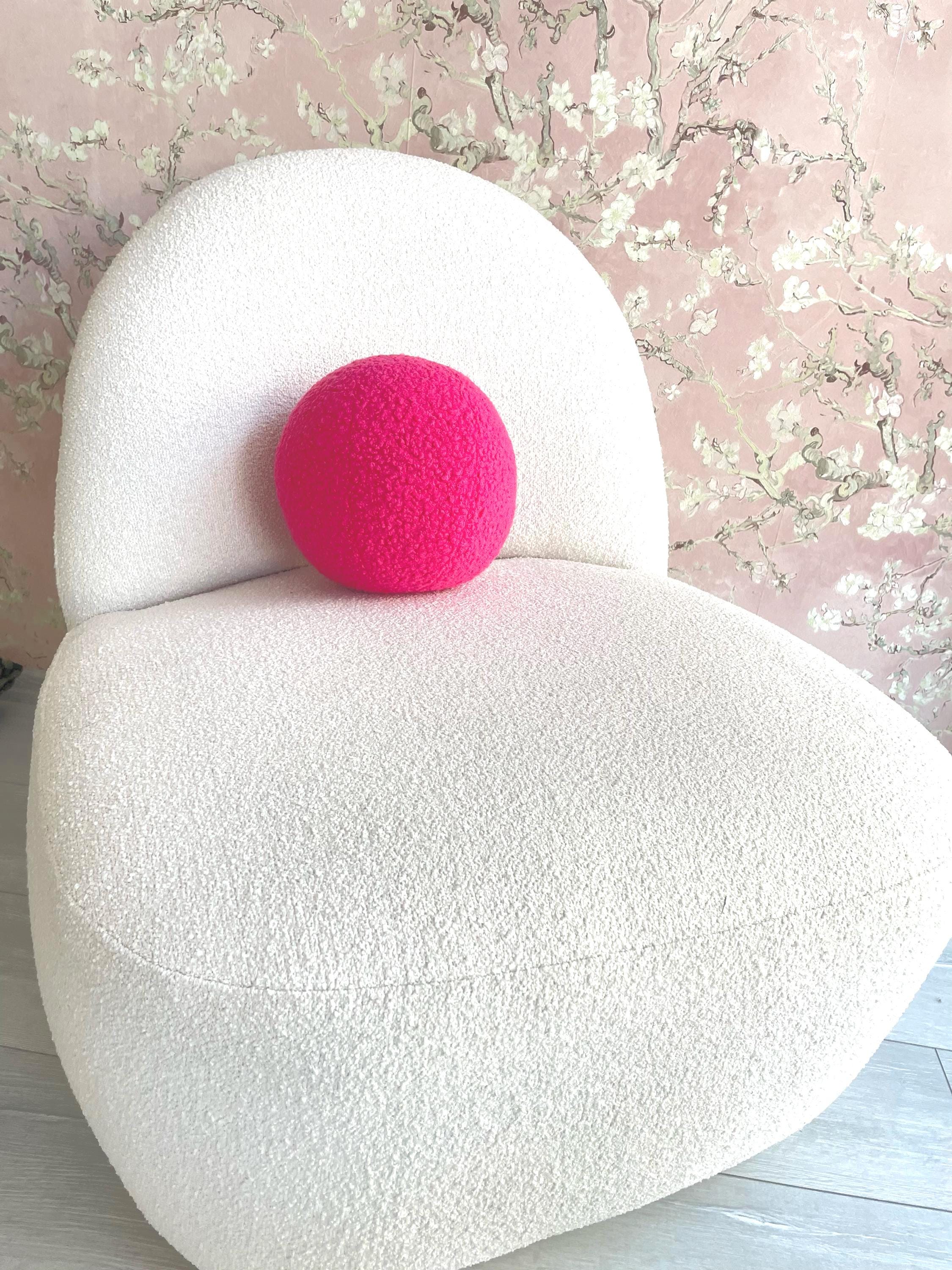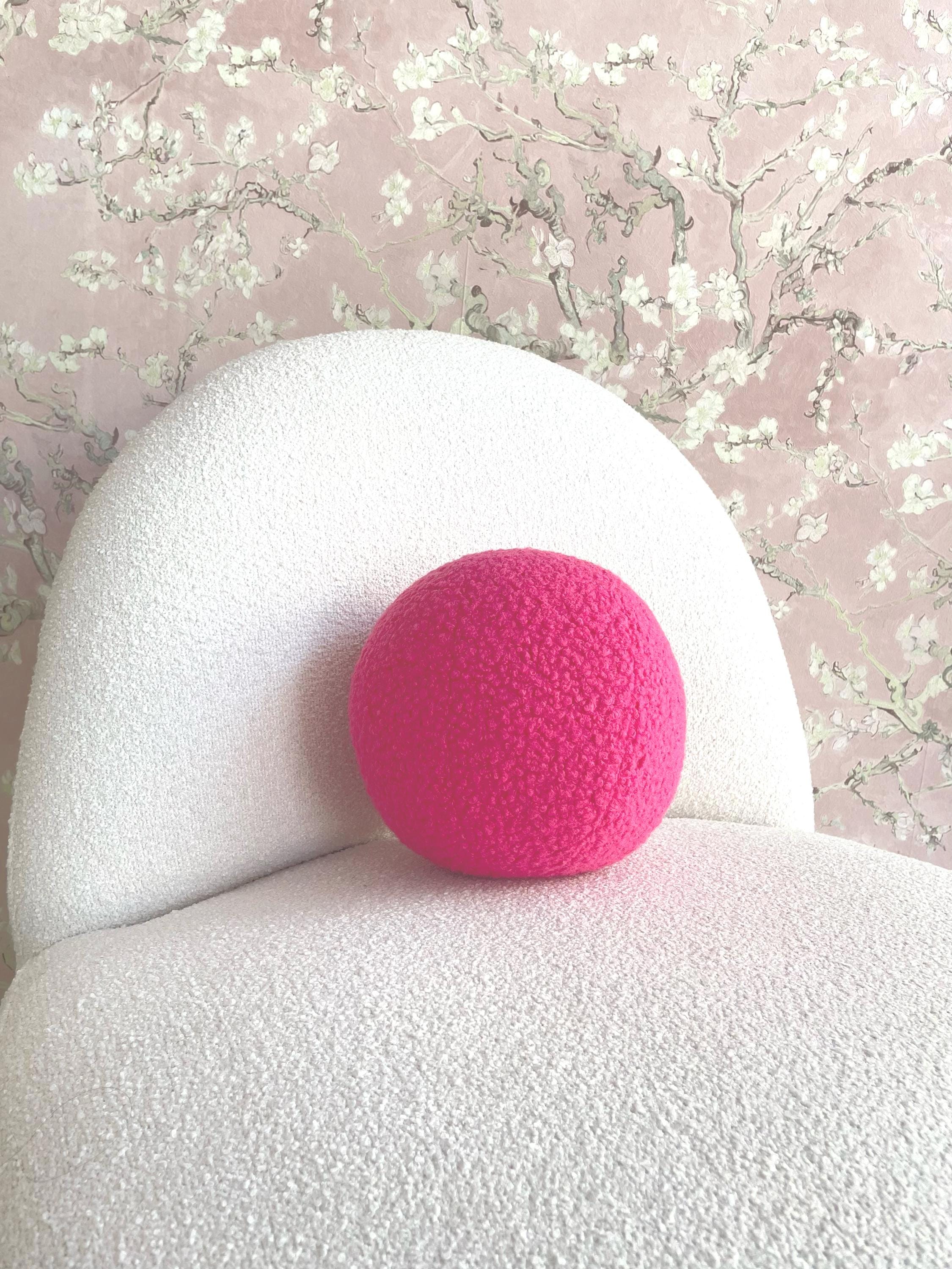 Pink Boucle Ball Pillow: Modern Scandinavian Home Decor