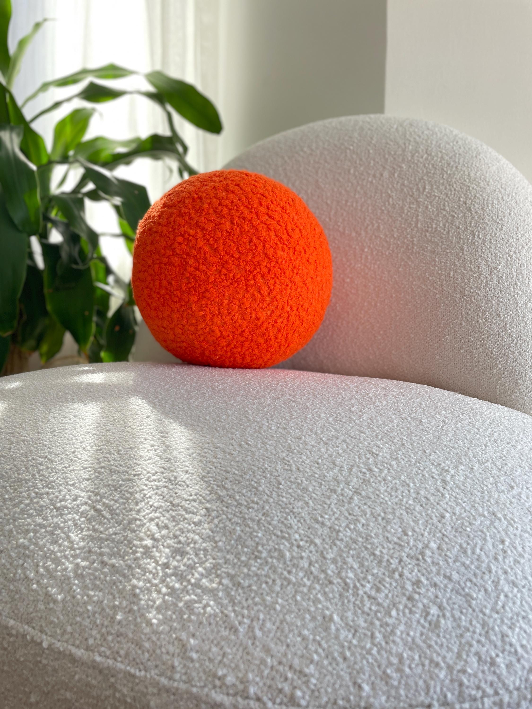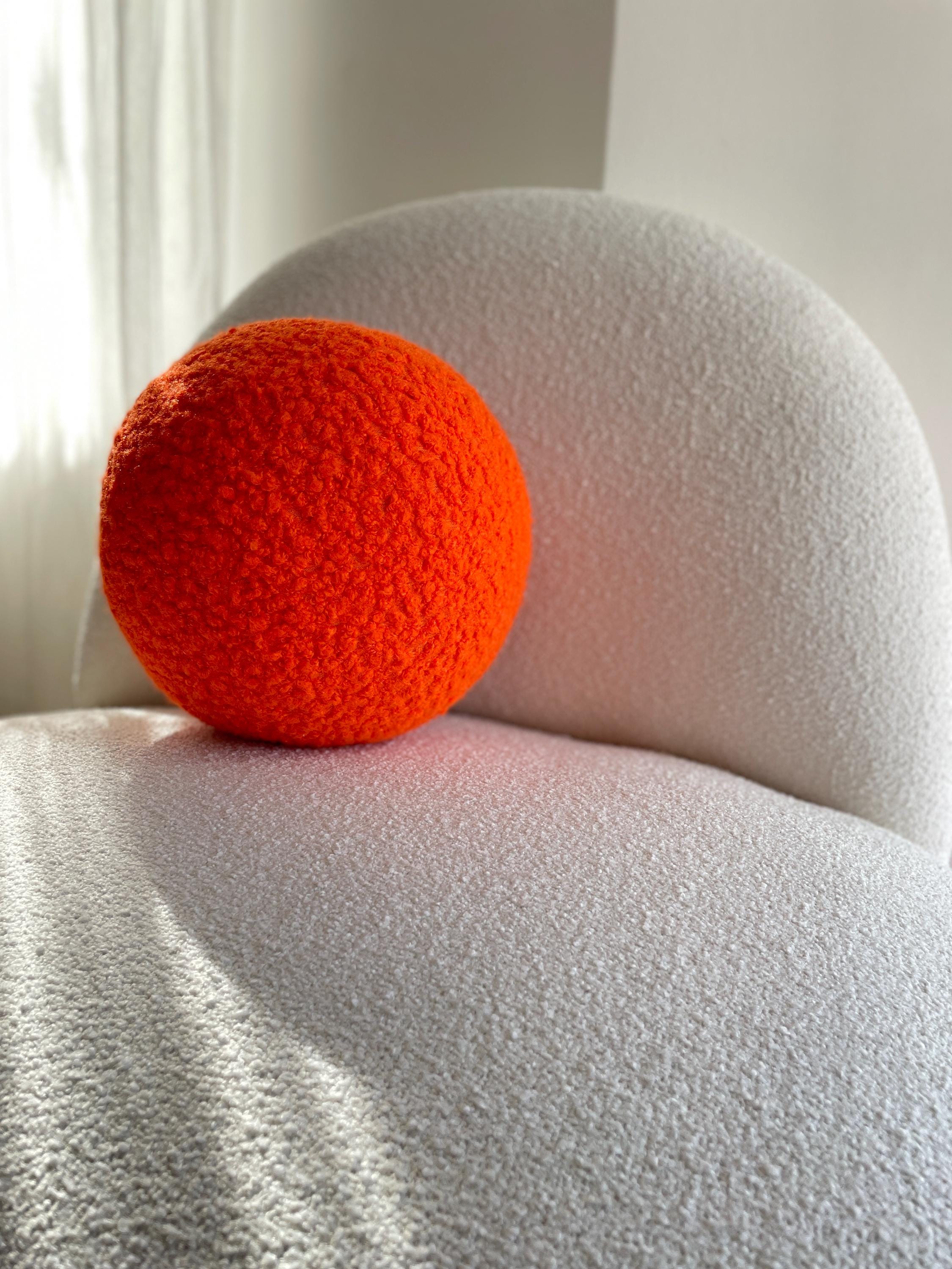 Fully handmade decorative pillow made of teddy/boucle fabric. Color is Orange. Teddy boucle cushion is make with all of colors you see on photos.