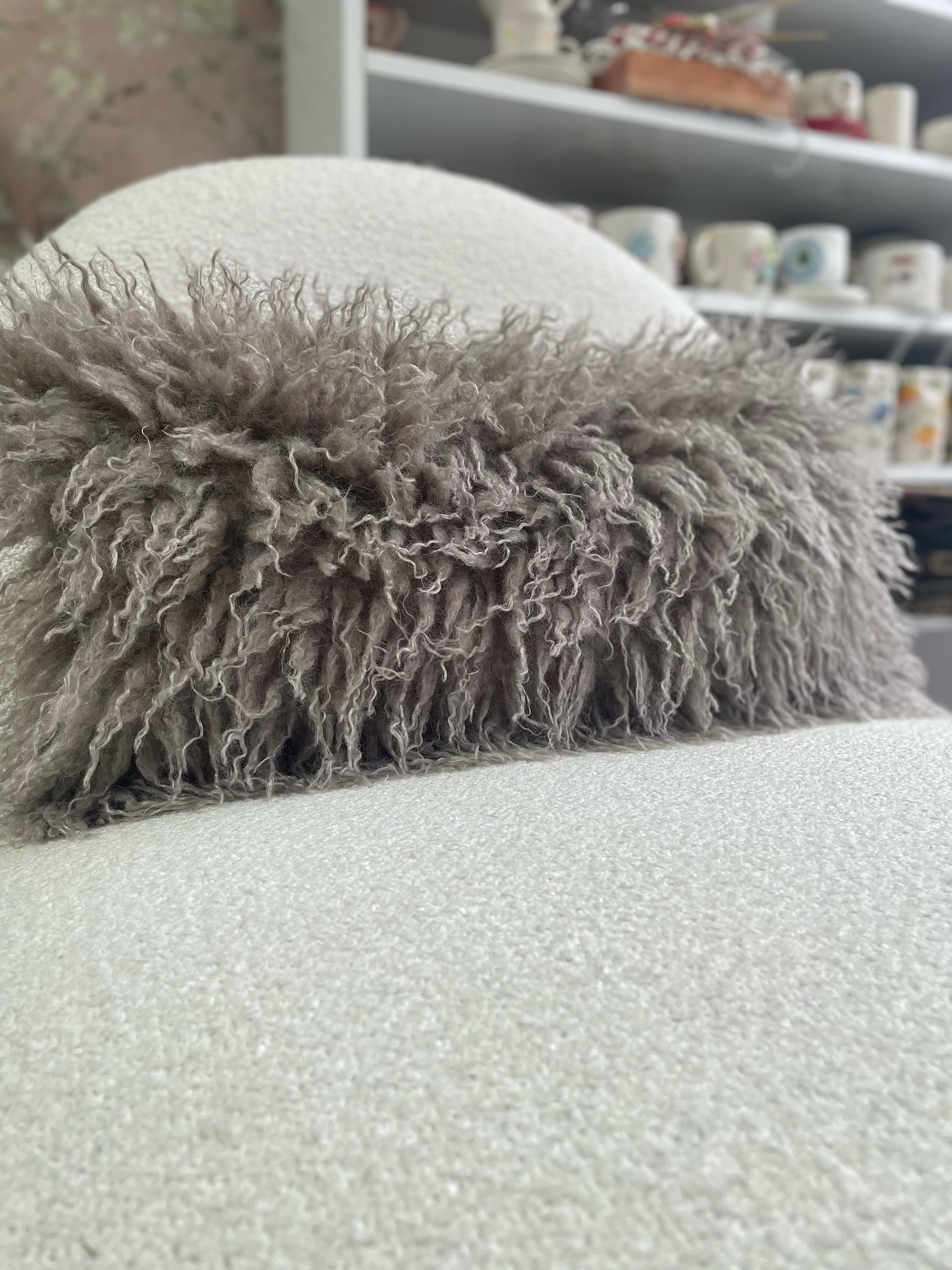 Luxuriously Soft Faux Tibetan Lamb Pillow Cover – Mongolian Sheepskin Faux Fur-Cozy Elegance