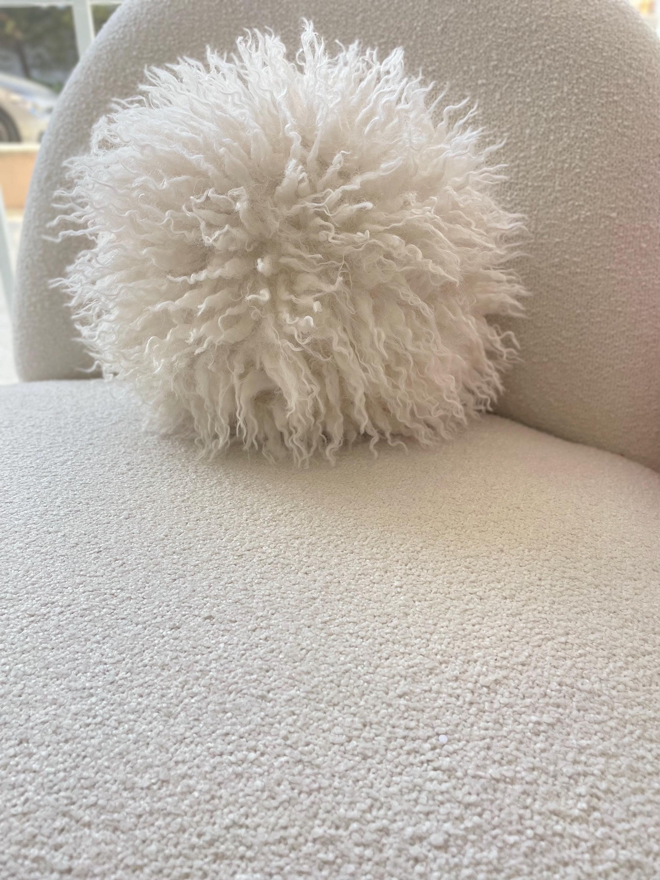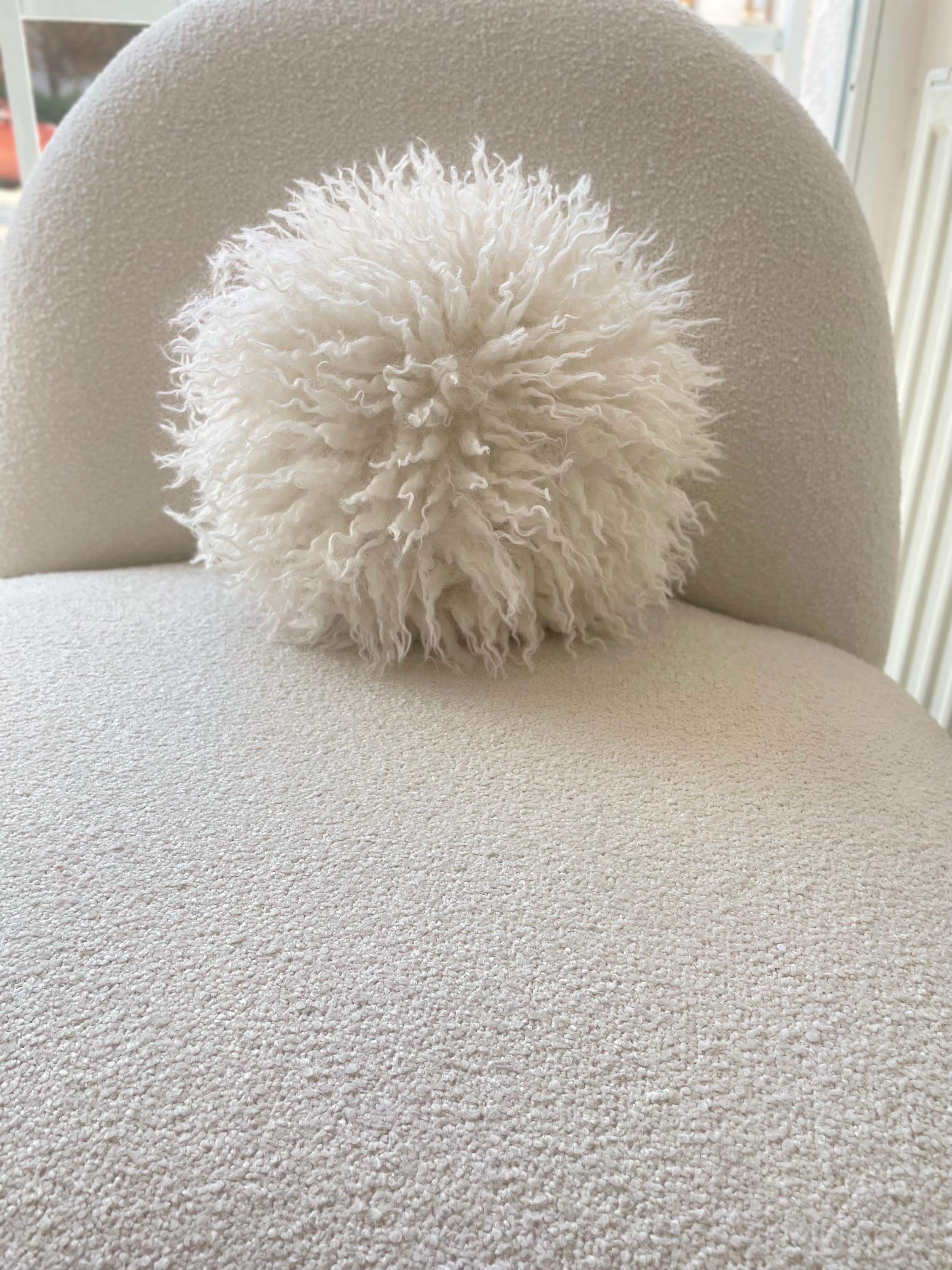You can purchase our completely handmade pillows in 4 sizes (6”-8”-10”-12”). The 10” sphere pillow you see in the images is CREAM in color.